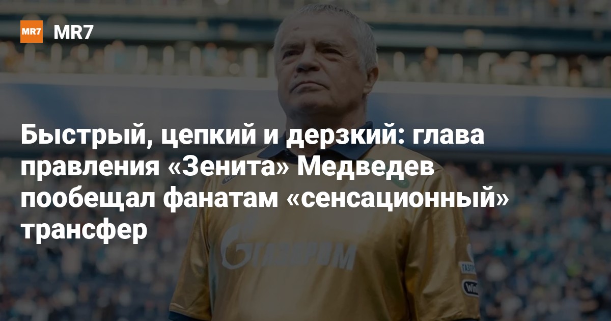 Председатель правления петербургского «Зенита» Александр Медведев анонсировал переход в клуб нового игрока. Подписать с ним контракт могут в ближайшие дни. При этом, по словам Медведева, если все сложится, то трансфер будет «сенсационным».
