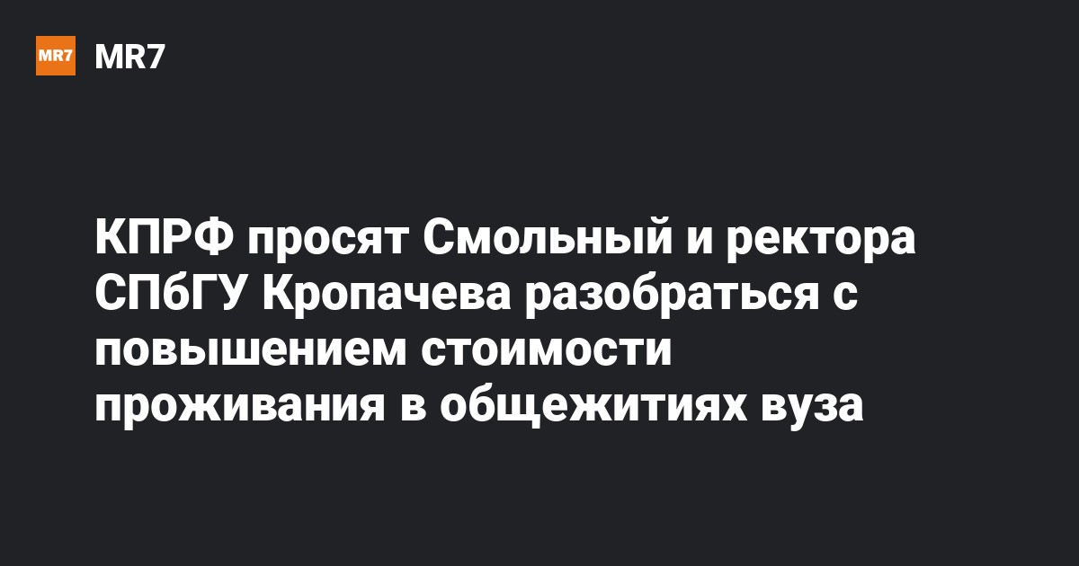 Глава фракции КПРФ в Заксобрания Петербурга Роман Кононенко обратился в комитет по науке и высшей школе города и к ректору СПбГУ Николаю Кропачеву с просьбой остановить рост цен на проживание студентов в общежитиях вуза.