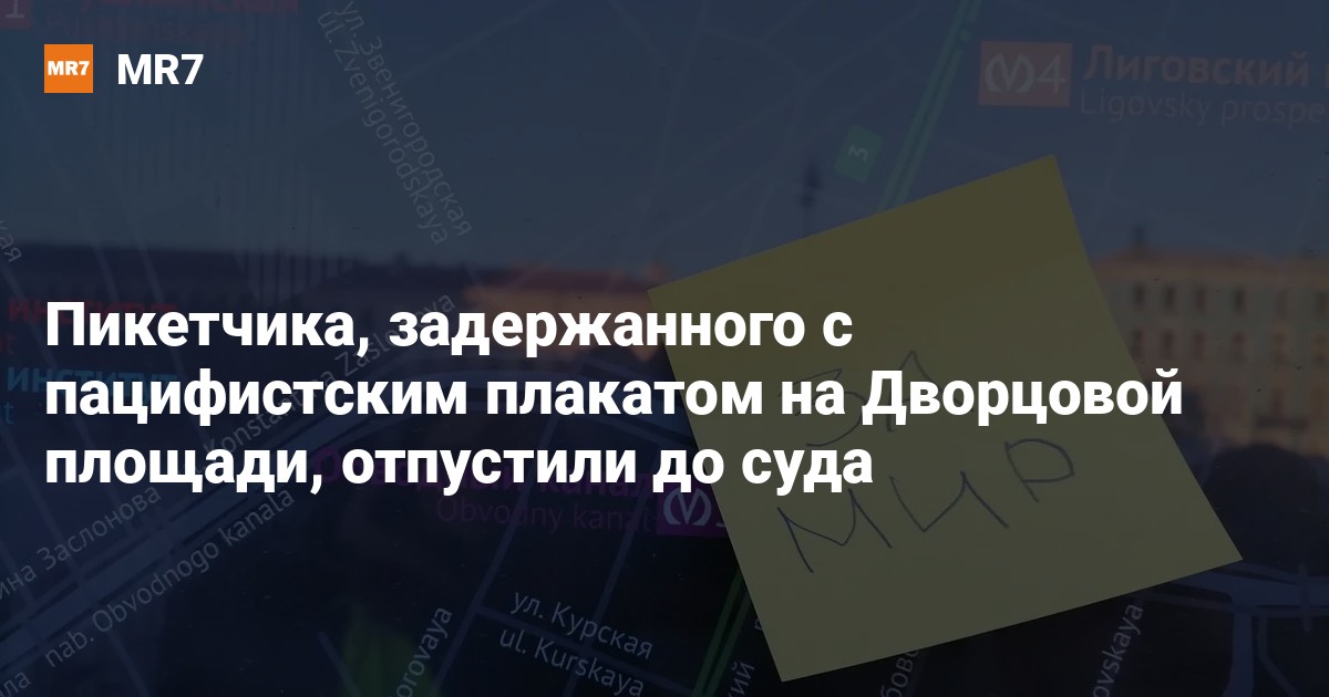 Петербуржец встал в одиночный пикет с плакатом днём, после задержания его доставили в отдел полиции № 78 Центрального района. В 15:00 к нему отправился адвокат от правозащитников.