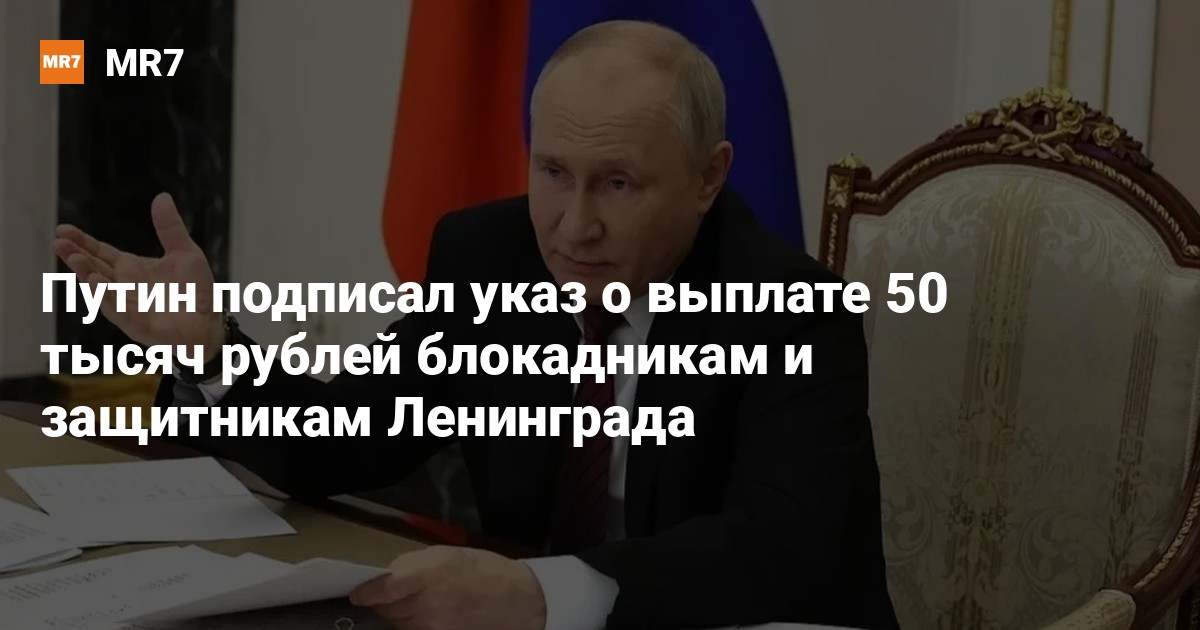 Президент Владимир Путин подписал указ о единовременной выплате по 50 тысяч рублей блокадникам и защитникам Ленинграда к 80-летию снятия блокады. Текст документа был опубликован на официальном сайте правовых актов. Напомним, ранее Владимир Путин подписал указ о цифровом паспорте.