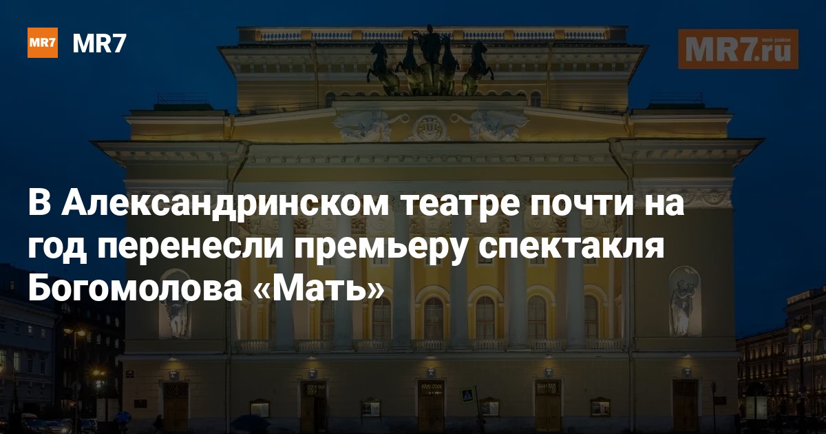 В Александринском театре перенесли на 2024 год премьеру спектакля «Мать» режиссёра Константина Богомолова. Информация об этом появилась на сайте театра.