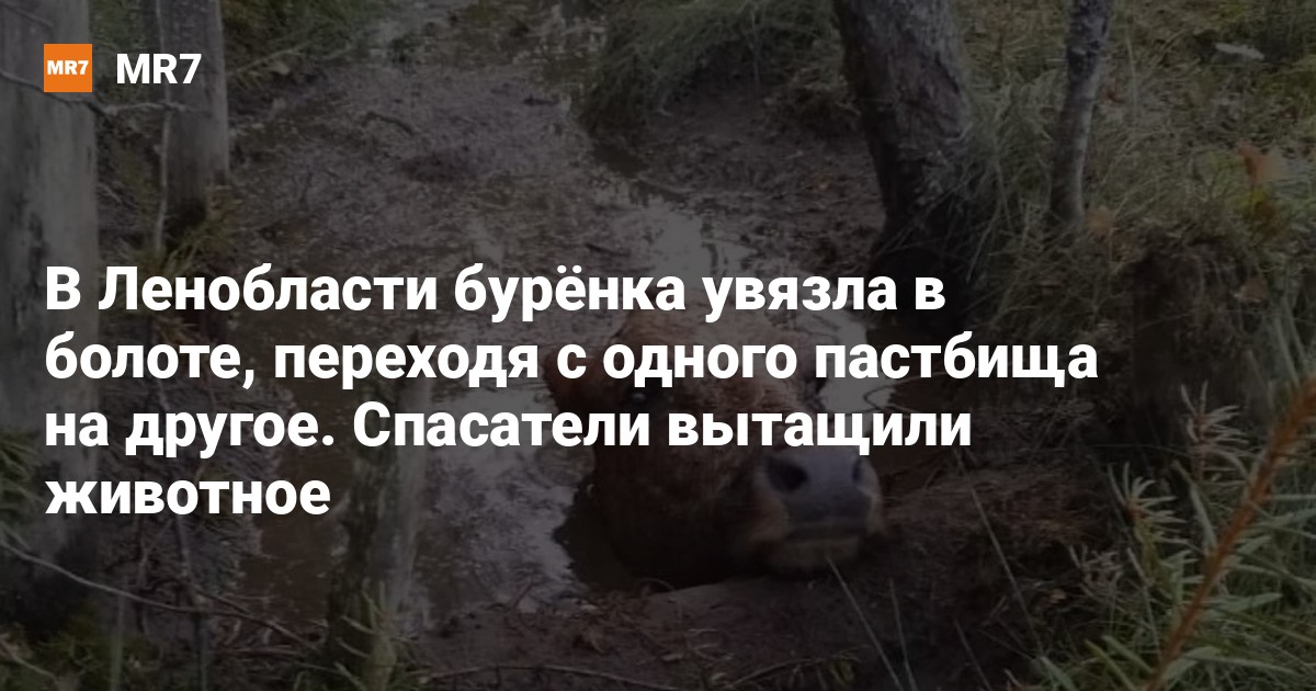 Возле деревни Кабацкое в Ломоносовском районе Ленинградской области бурёнка паслась на лугу, но решила уйти на соседнее поле и по дороге увязла в болоте. В пресс-службе МЧС России 19 сентября рассказали о спасении животного.