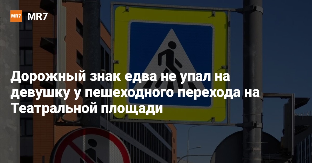 Дорожный знак рухнул рядом с девушкой на Театральной площади. Он был установлен в соответствии с требованиями ГОСТ, но сильного ветра всё же не выдержал, сообщили в пресс-службе АО «Метрострой Северной Столицы».