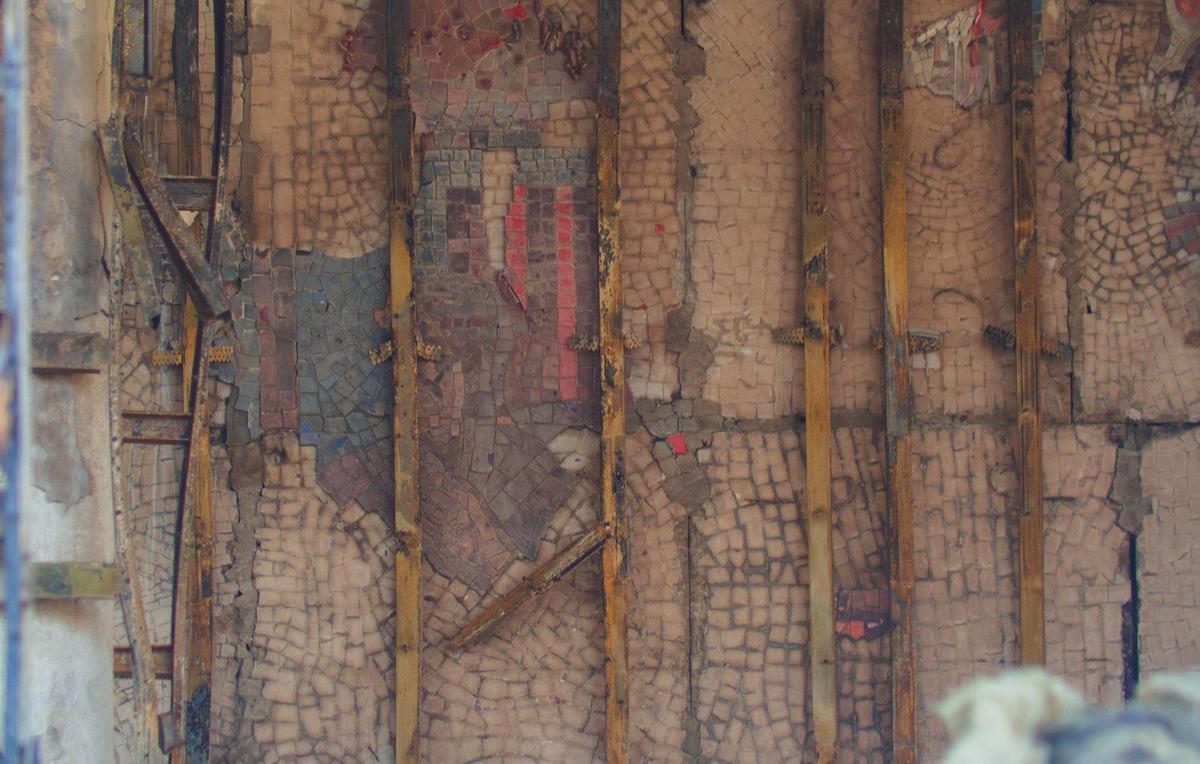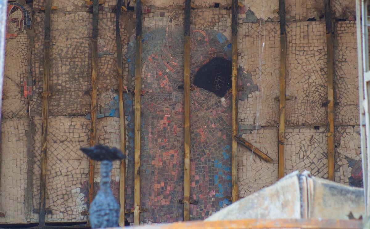 Сильный пожар, произошедший в ночь на 16 сентября в здании бывшего кинотеатра «Слава» на Бухарестской улице, уничтожил перегородку, за которой скрывалось большое мозаичное панно. Раньше композиция занимала всю стену фойе второго этажа. Её скрыли после того, как кинотеатр закрылся.