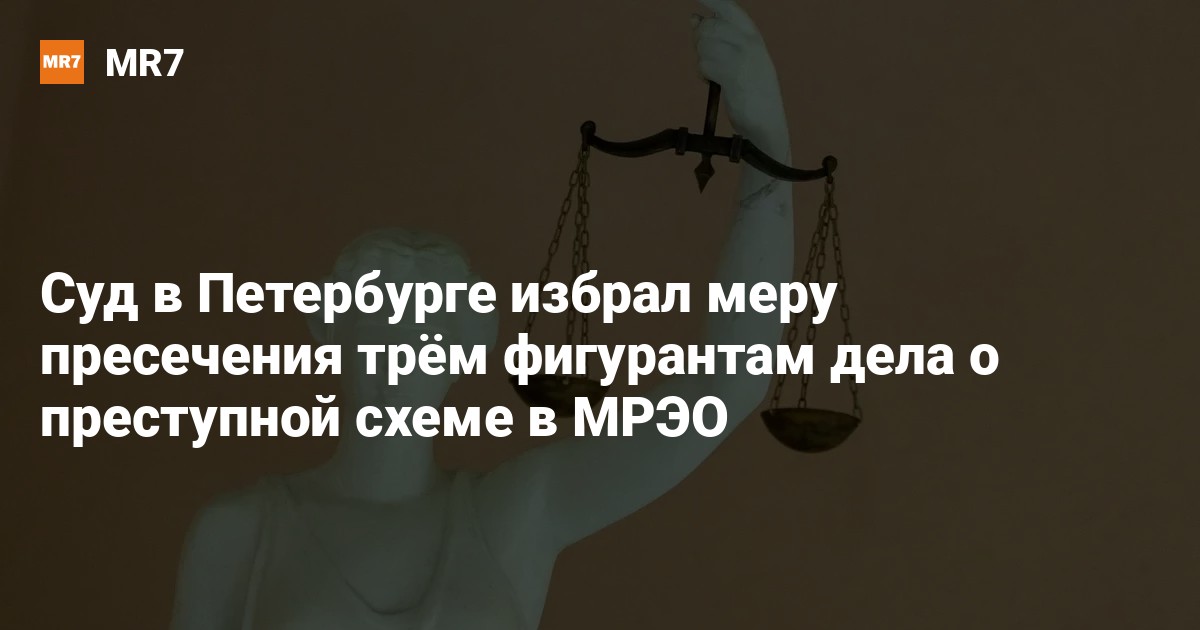 Октябрьский районный суд Петербурга избрал меру пресечения трём фигурантам дела о получении взятки группой лиц по предварительному сговору в МРЭО, сообщили в объединённой пресс-службе судов города.