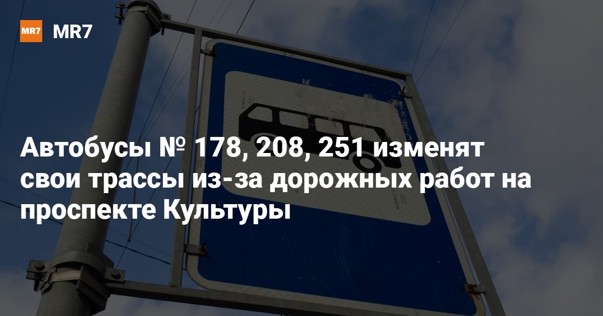 Из-за дорожных работ на проспекте Культуры трассы автобусных маршрутов № 178, 208, 251 временно изменили, сообщает 27 сентября пресс-служба СПб ГКУ «Организатор перевозок».