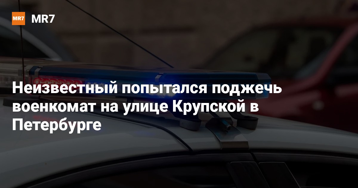 Человек в капюшоне бросил бутылку с зажигательной смесью в военкомат недалеко от станции метро «Елизаровская» по адресу: улица Крупской, дом № 5. Полиции не удалось задержать злоумышленника, и он скрылся.
