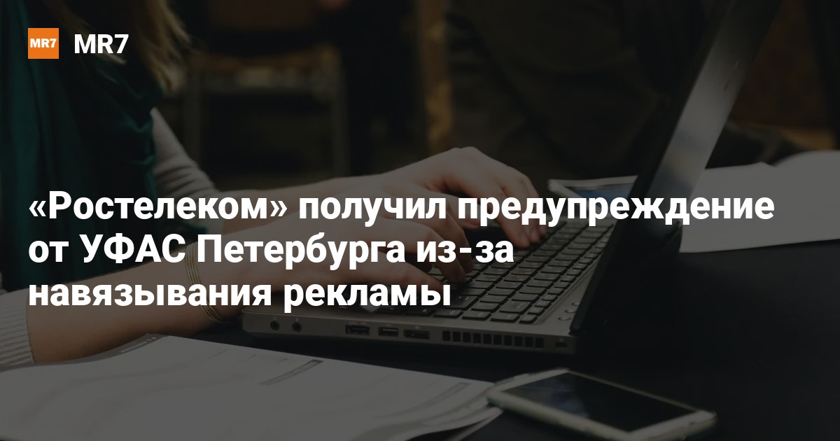 Управление Федеральной антимонопольной службы по Петербургу выдало предупреждение компании «Ростелеком» о недопустимости навязывания рекламы, сообщили в пресс-службе ведомства.