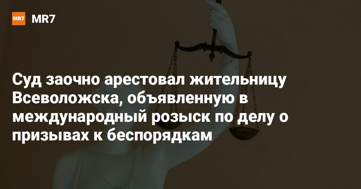 Суд в Петербурге заочно заключил под стражу жительницу Всеволжска Веронику Кузьмину на два месяца с даты фактического задержания по делу об оправдании терроризма и призывам к беспорядкам, сообщили в объединённой пресс-службе городских судов.