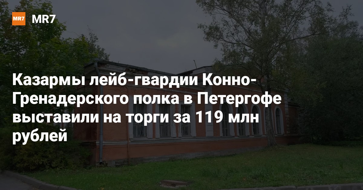В Петергофе продадут часть бывших казарм лейб-гвардии Конно-Гренадерского полка. Торги пройдут 17 ноября, сообщили в пресс-службе Российского аукционного дома (РАД).