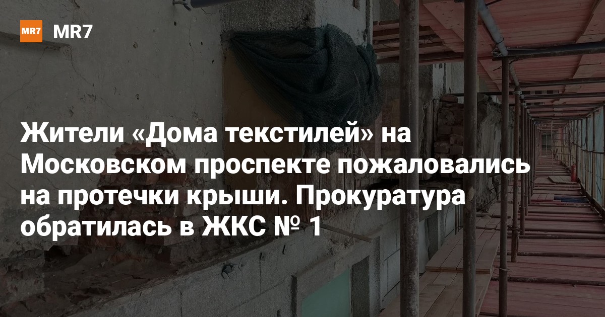 Прокуратура приняла меры для устранения протечки крыши в «Доме текстилей» на Московском проспекте, 79, сообщили 12 октября в пресс-службе ведомства.