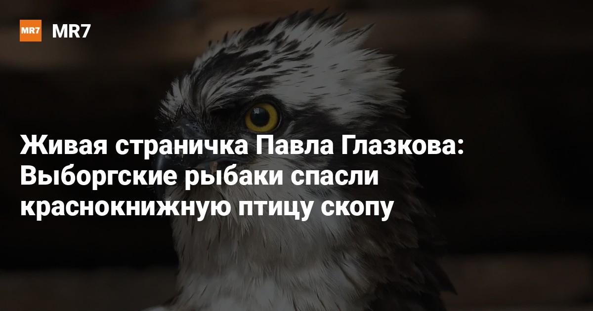 На днях в Выборгском районе Ленобласти местные рыбаки нашли обессиленную скопу — птицу, занесенную в Красную книгу России. Об этом рассказал в своем блоге «Каждой твари по паре» биолог Павел Глазков.