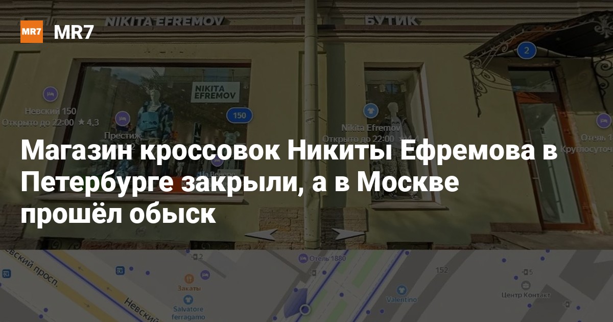 В Петербурге закрыли магазин обуви, одежды и аксессуаров предпринимателя и блогера Никиты Ефремова, в котором продаются товары зарубежных брендов. По данным СМИ, в аналогичном магазине в Москве прошёл обыск.