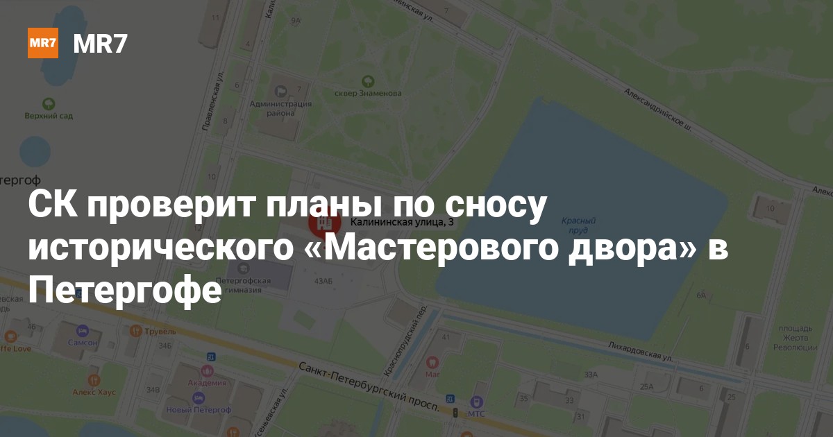 Председатель следственного комитета Александр Бастрыкин поручил провести проверку информации о сносе корпусов исторического здания «Мастерового двора» в Петергофе, об этом сообщили в пресс-службе СК 16 ноября.