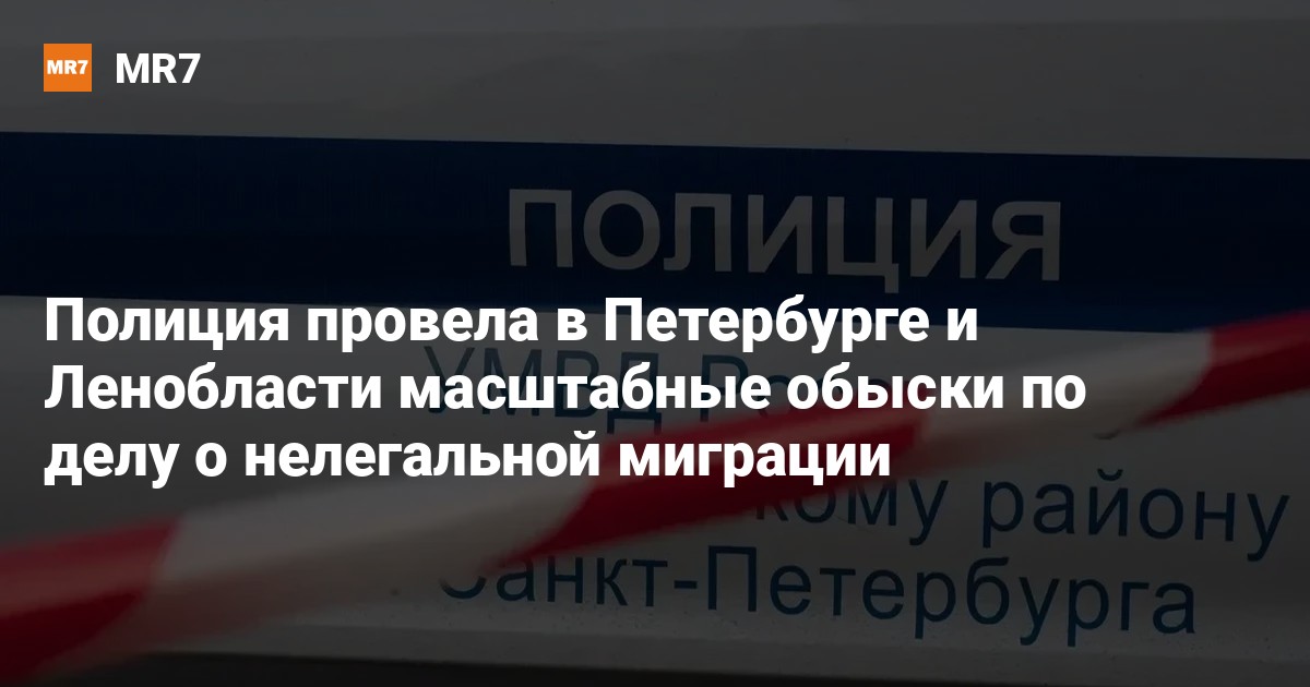 Масштабные обыски по делу о нелегальной миграции прошли в Кировском и Московском районах Петербурга, Пушкине и Колпино, а также в посёлке Ковалёво и Мурино в Ленобласти, сообщили в ГУ МВД по регионам.