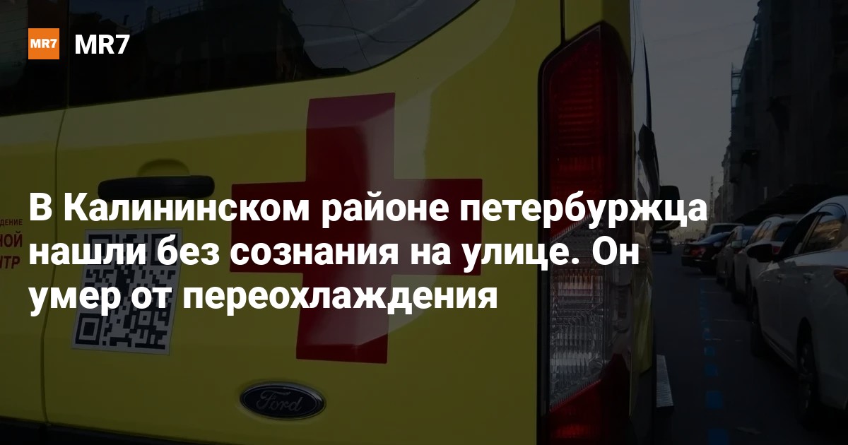 Сегодня, 7 декабря, в Калининском районе Петербурга мужчину с признаками переохлаждения нашли без сознания на улице, пишет «Фонтанка». Прохожие заметили его у дома № 75 по Северному проспекту. Они вызвали скорую около половины восьмого утра.