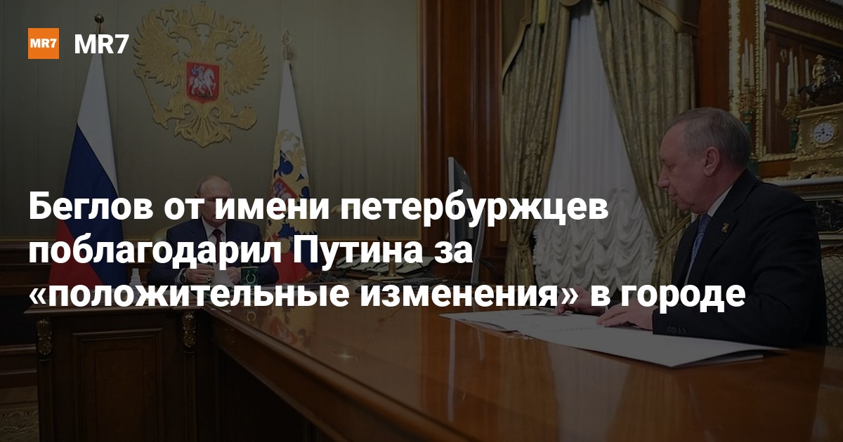 Губернатор Петербурга Александр Беглов от имени местных жителей поблагодарил президента России Владимира Путина за положительные изменения в городе. Об этом петербургский градоначальник написал в своем Telegram-канале после того, как стало известно, что Путин будет баллотироваться на новый срок.