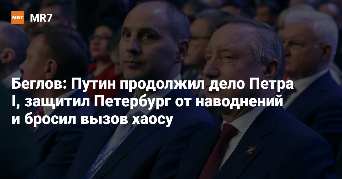 По словам Беглова, Путин — это сила, которая противостоит хаосу. Он назвал главу государства «главным защитником традиционных ценностей и справедливости». Завершая текст про Путина, Беглов вновь вспомнил про императора Петра.