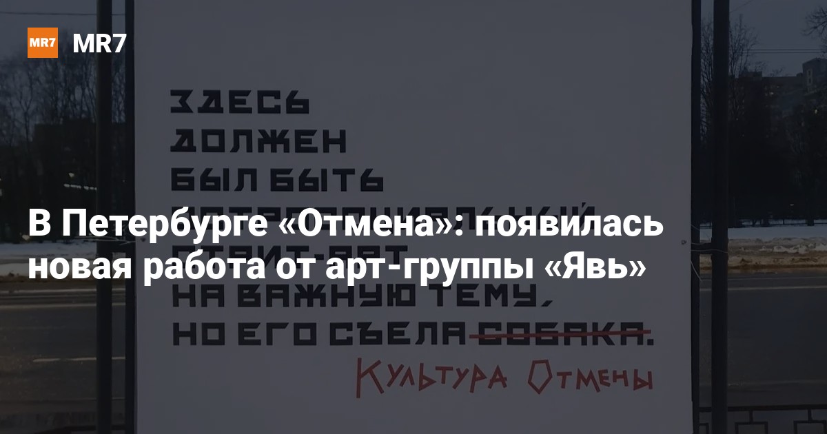 Сегодня арт-группа «Явь» представила свою новую работу «Отмена», об этом сообщили активисты в официальном telegram-канале. Стрит-арт пока ещё можно увидеть на проспекте Космонавтов, 94.