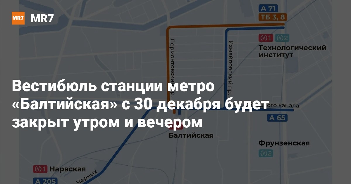 Режим работы вестибюля станции метро «Балтийская» в Петербурге изменится с 30 декабря. Как сообщили в пресс-службе городского комитета по транспорту, это связано с ремонтом эскалатора.