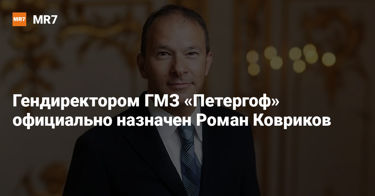 Роман Ковриков закончил СПбГУ (факультет журналистики), кандидат наук по культурологии. В 2000-2009 годах работал в Царскосельских янтарных мастерских. В ГМЗ «Петергоф» перешел в 2010 году на должность начальника службы приема и обслуживания посетителей. В 2014-2022-х годах стал заместителем генерального директора по культурно-просветительской работе. В марте прошлого года был назначен врио гендиректора музея-заповедника.