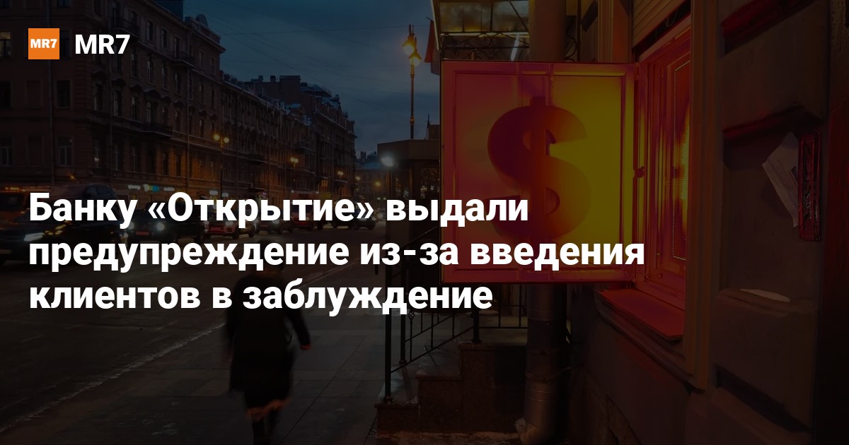 Петербургское управление Федеральной антимонопольной службы выдало предупреждение банку «Открытие». Как сообщили 9 января в пресс-службе УФАС, компанию подозревают в введении клиентов в заблуждение через рекламу своих продуктов.
