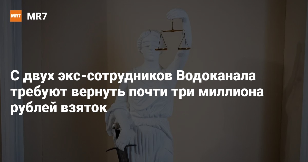 Петербургская прокуратура потребовала взыскать с двух бывших сотрудников ГУП «Водоканал Санкт-Петербурга» Романа Захлебаева и Александра Самченко, а также их сообщников Александра Цукуры и Константина Душко более 2,8 миллионов рублей, полученных в качестве взяток, сообщает 78.ru.
