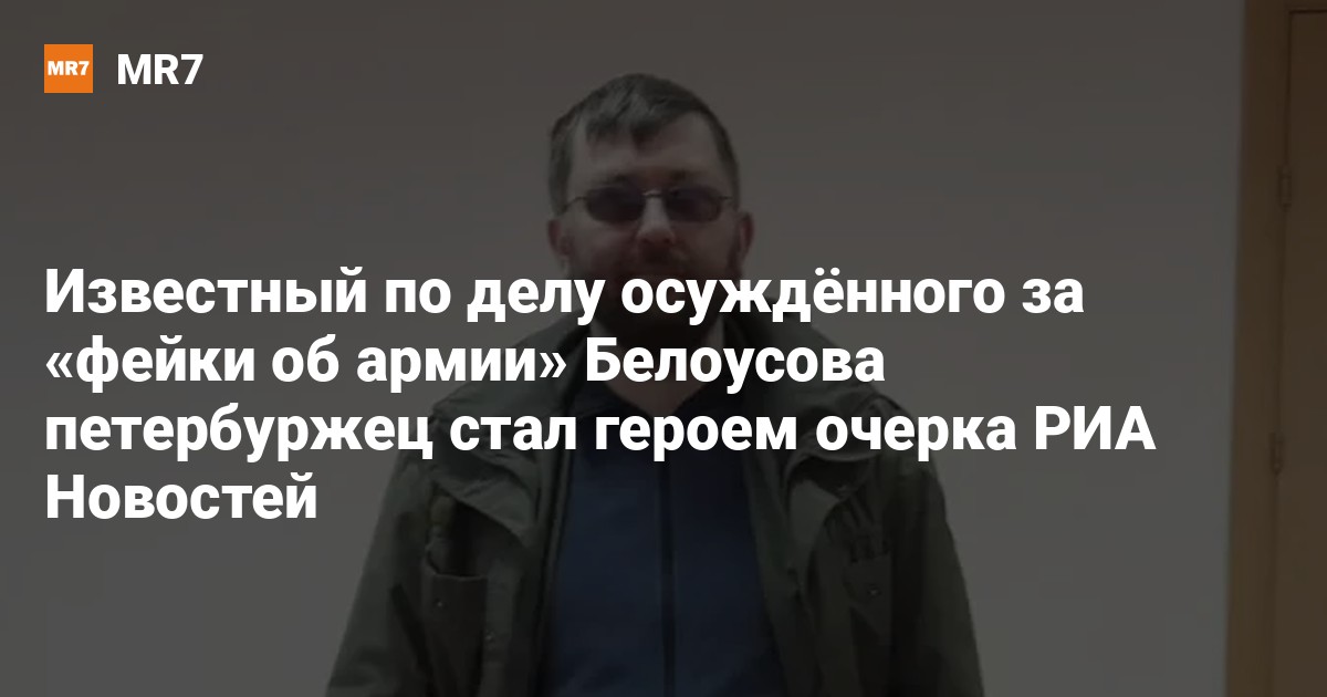 Поводом для заявления послужили высказывания Белоусова в общем чате и в личной переписке. Олега в марте 2023 года признали виновным по двум статья Уголовного кодекса — 207.3 (фейки об армии) и 280 (призывы к экстремизму) на 5,5 лет колонии общего режима.