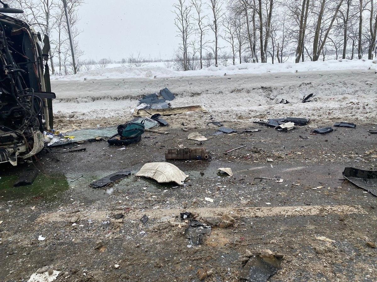 Авария произошла на 671-м километре автодороги сегодня днём, 15 января. Судя по фотографиям, там столкнулись два грузовика и две легковушки.