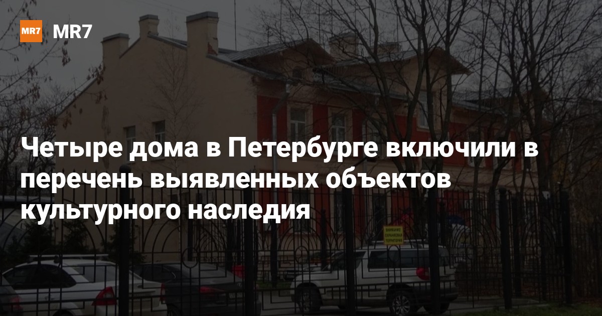 Четыре дома в Петербурге включили в перечень выявленных объектов культурного наследия. Какие именно — рассказали в пресс-службе КГИОП 19 января.