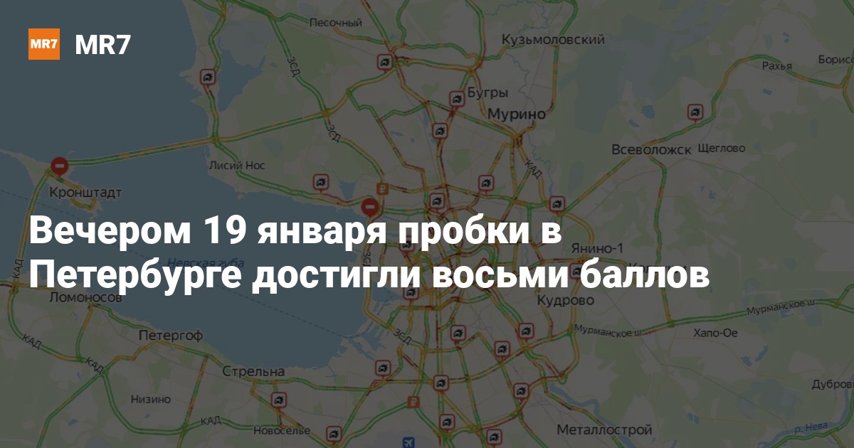 Вечером в пятницу, 19 января, автомобилисты в Петербурге стоят в пробках в разных частях города. По данным сервиса «Яндекс.Карты», загруженность на дорогах выросла до восьми баллов.