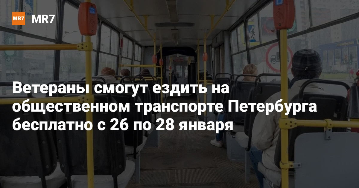 Для ветеранов Великой Отечественной войны проезд в метро, автобусах, троллейбусах и трамваях Петербурга станет бесплатным с 26 по 28 января. Как сообщили в пресс-службе комитета по транспорту, такое решение связано с празднованием 80-летия полного освобождения Ленинграда от фашистской блокады.