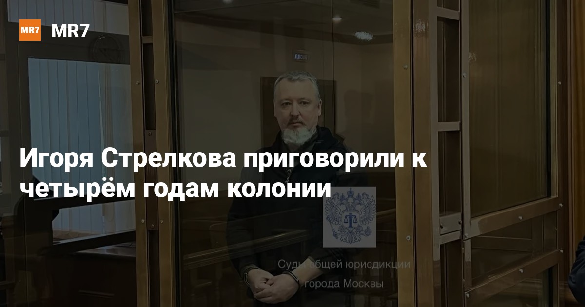 Мосгорсуд приговорил экс-министра обороны ДНР Игоря Стрелкова (Гиркина) к четырём годам лишения свободы в колонии общего режима, сообщили в пресс-службе столичных судов общей юрисдикции. Его признали виновным по второй части статьи 280 УК РФ (публичные призывы к осуществлению экстремистской деятельности).