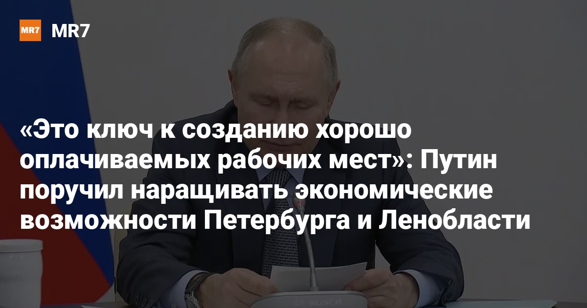 В ходе совещания глава РФ подчеркнул, что Санкт-Петербург — важнейший исторический, культурный, деловой центр страны. По его словам, именно в этом городе, а также в Ленобласти «расположены ключевые логистические узлы и морские порты, успешно работают крупнейшие научно-технологические и образовательные центры, производственные и индустриальные площадки».