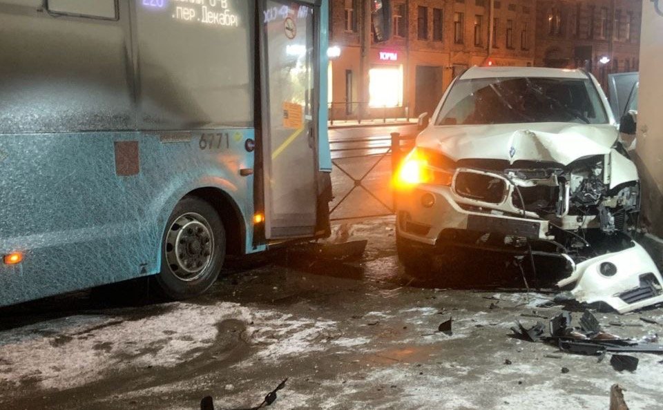 В Петроградском районе Петербурга около 01:00 произошла авария с BMW и рейсовым автобусом, сообщает 78.ru.