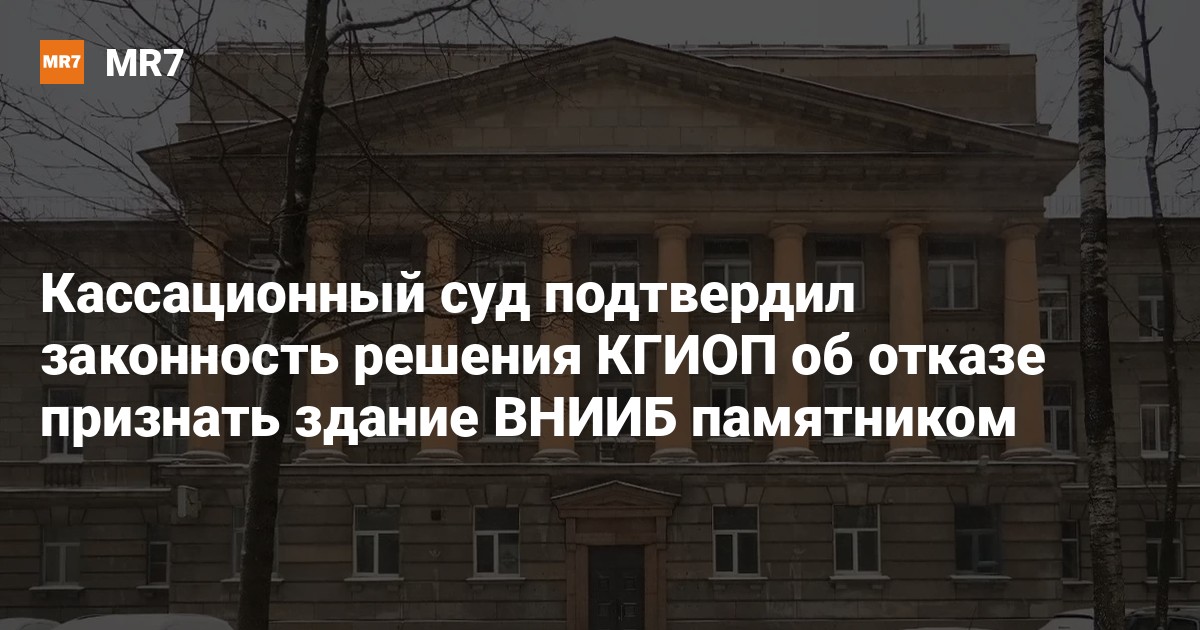 Третий кассационный суд общей юрисдикции сегодня, 7 февраля, отклонил жалобу петербургских градозащитников на решение суда по иску к КГИОП по отказу признать памятником здание бывшего Института бумаги (ВНИИБ) на 2-м Муринском проспекте.