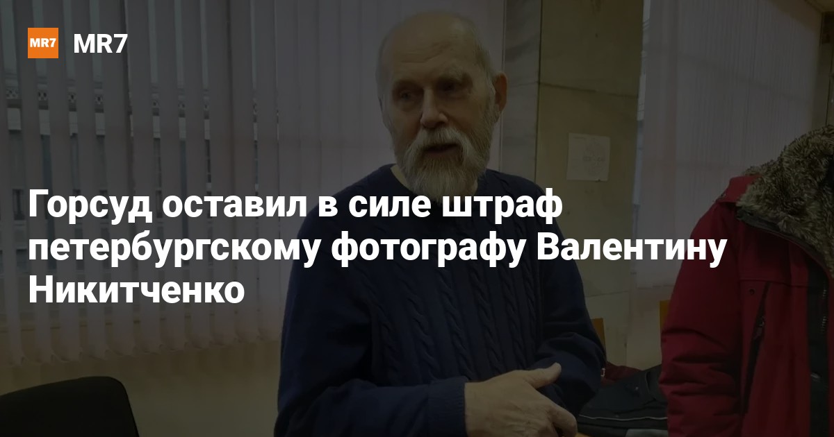 Горсуд Петербурга оставил без изменений апелляционную жалобу фотографа Валентина Никитченко, который пытался оспорить решение Колпинского суда, признавшего его виновным по статье 20.3.3 КоАП за публикации на его собственном сайте.
