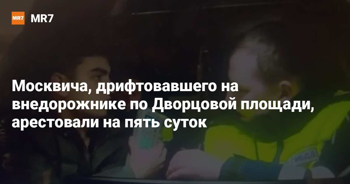 Дзержинский суд Петербурга на пять суток арестовал молодого человека, который дрифтовал на внедорожнике по Дворцовой площади. Подробности 20 февраля рассказали в пресс-службе ГУ МВД по городу и Ленобласти.