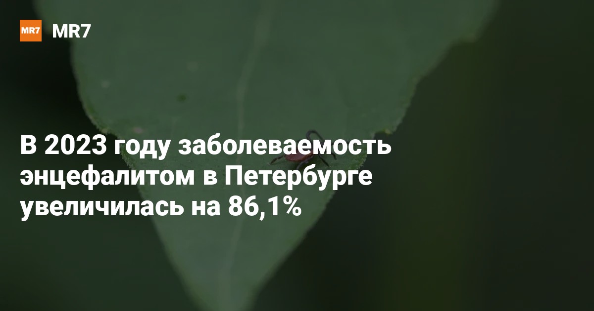Заболеваемость клещевым энцефалитом в 2023 году в Петербурге увеличилась на 86,1% по сравнению с 2022-м, сообщила пресс-служба городского Роспотребнадзора.