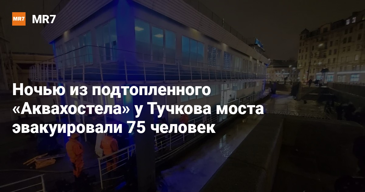 Из подтопленного «Аквахостела» на Ждановской набережной у Тучкова моста спасатели эвакуировали 75 человек в ночь на 24 февраля. Как сообщили в пресс-службе Северо-Западной транспортной прокуратуры, никто не пострадал.