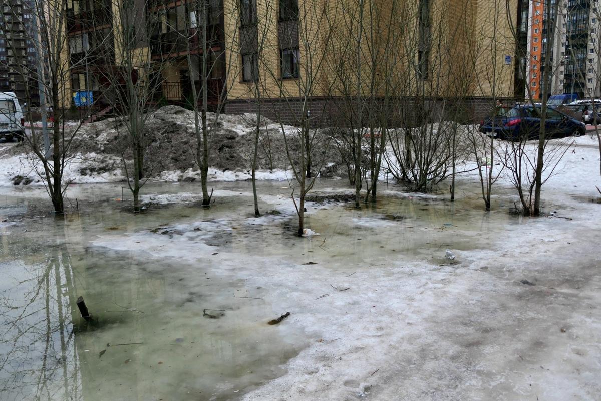 На портале «Наш Санкт-Петербург» жильцы дома № 26 по проспекту Юрия Гагарина жалуются на воду, которая перекрыла доступ к тротуару. Похожая история во дворе 78-й школы, пруд из растаявшего снега ученики обходят по сугробам. Уличный бассейн появился и в доме № 55 на Бассейной улице. Местные жильцы пожаловались, что из-за проблем с ливневой системой лужи у них есть постоянно.