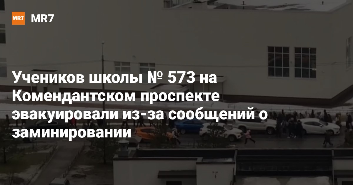 Учеников школы № 573 на Комендантском проспекте эвакуировали из-за сообщений о заминировании, сообщили в Telegram-канале «ЖК "Чистое небо" — Инфоканал».