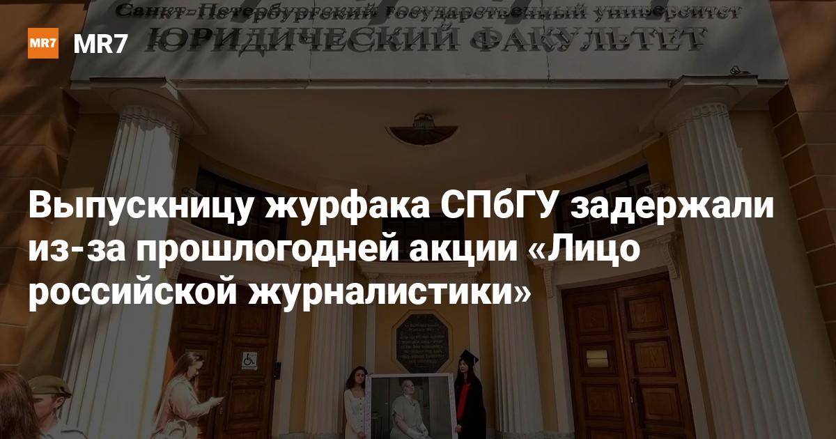 В Петербурге на Московском вокзале выпускницу журфака СПбГУ Валерию Мещерякову задержали из-за прошлогодней акции «Лицо российской журналистики» в поддержку Елены Милашиной, рассказали «ОВД-Инфо»* родственники задержанной.