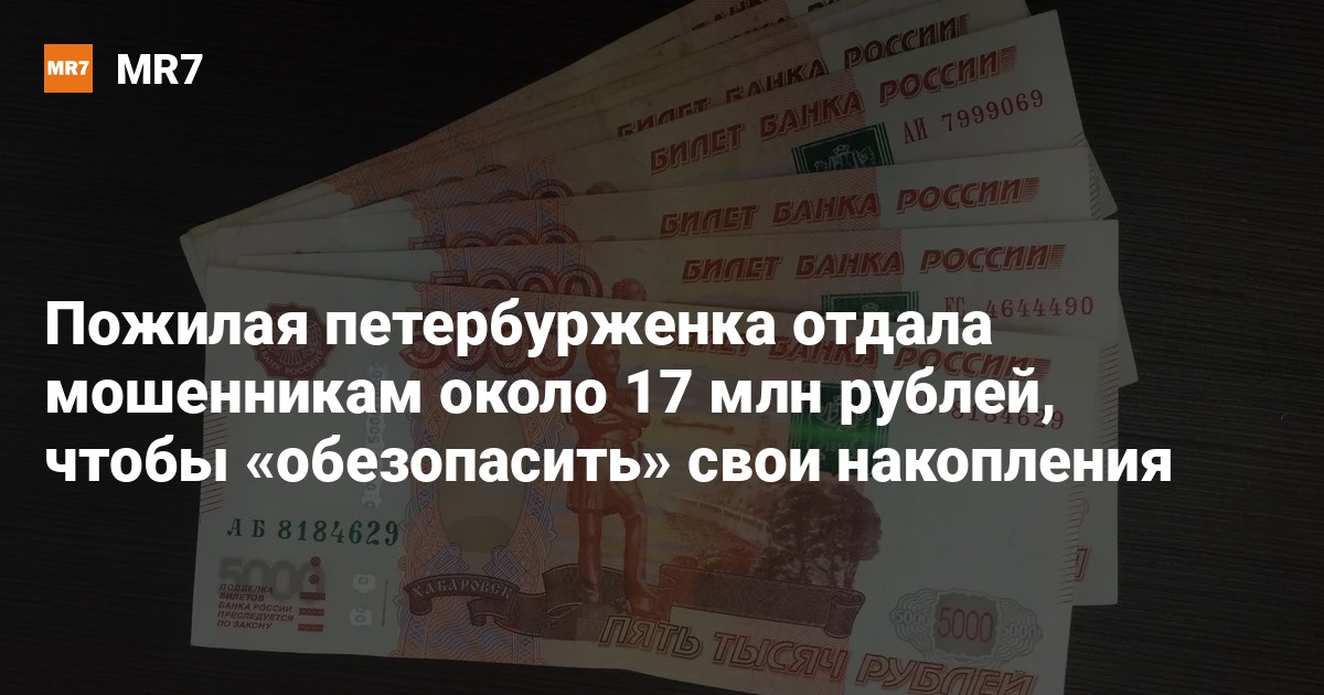 Накануне пенсионерка обратилась в полицию. Она рассказала, что с июля прошлого года по 26 февраля ей звонили неизвестные, которые представились сотрудниками различных служб. В итоге за этот период петербурженка перевела 16,7 миллиона рублей на их счета, чтобы обезопасить свои накопления от злоумышленников.