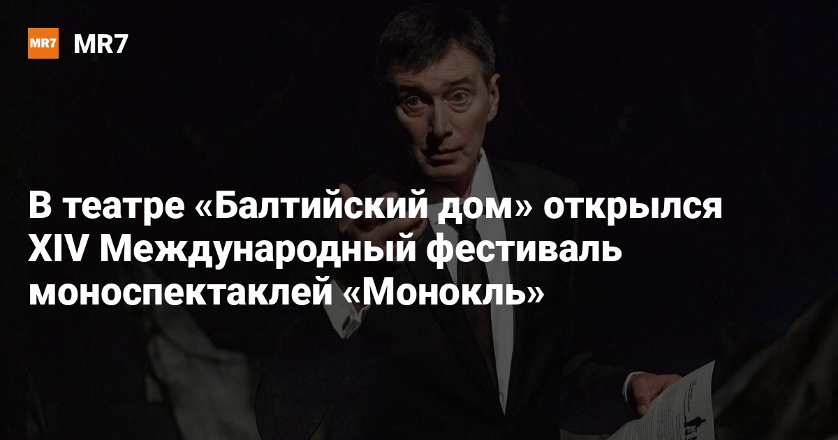 С 1 по 7 марта в театре «Балтийский дом» пройдёт XIV Международный фестиваль моноспектаклей «Монокль», сообщает пресс-служба театра.