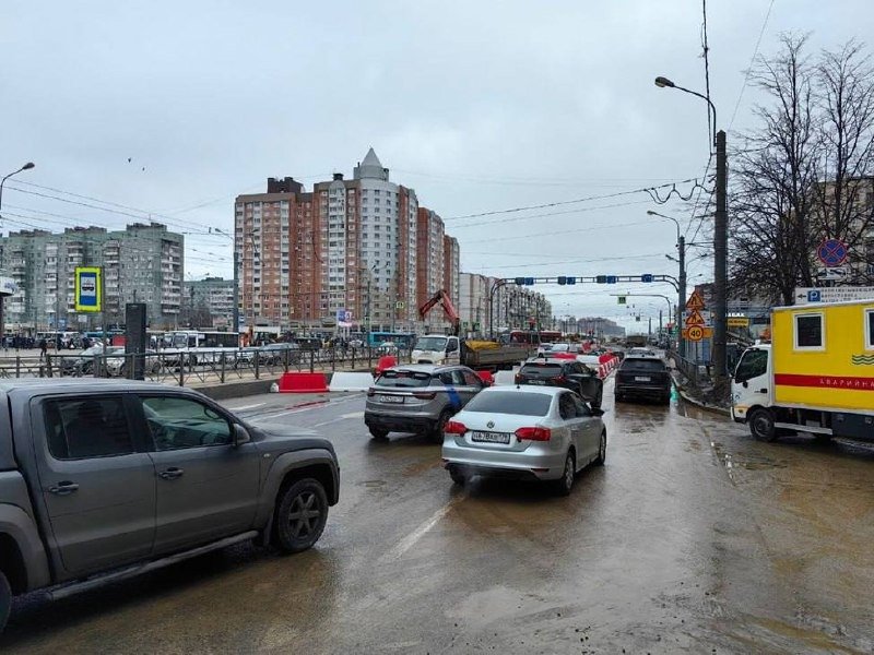 UPD (13:15): Воду отвели в канализацию, а проезжую часть очистили от песка, сообщили в пресс-службе Водоканала. Движение по аварийном участку на проспекте Энгельса осуществляется по крайней правой полосе.