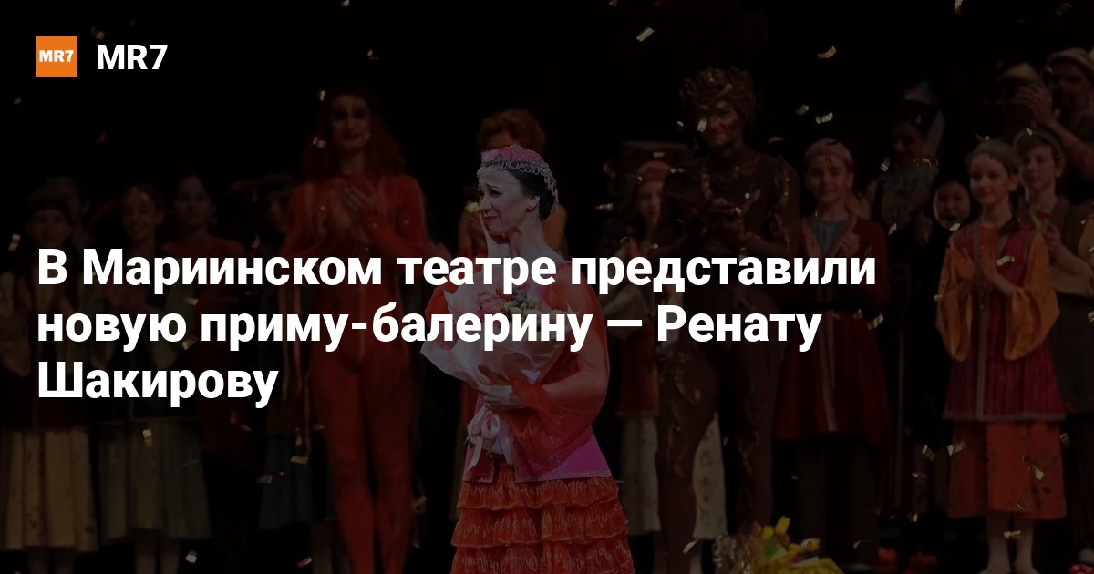 Первая солистка Мариинского театра Рената Шакирова объявлена примой-балериной — высший статус в балетной труппе. Об этом в театре торжественно объявили накануне вечером после спектакля «Шурале» о сказочном существе из татарского фольклора.