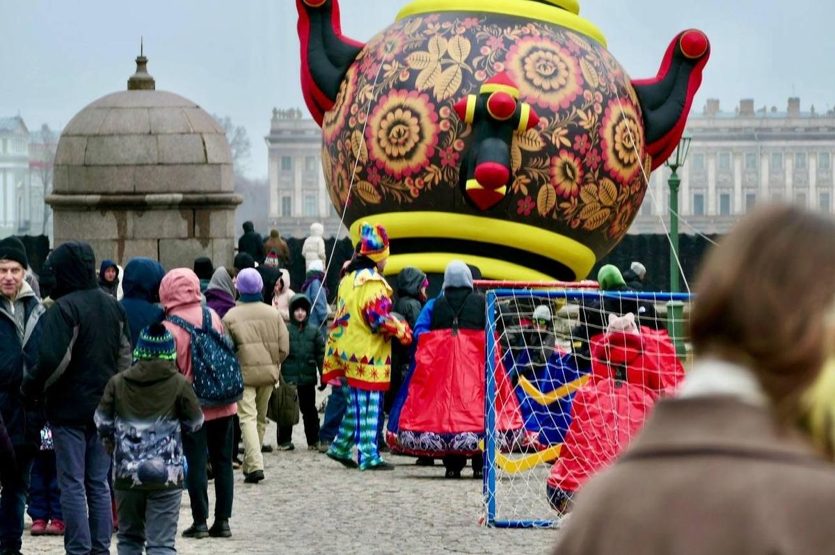 Масштабные праздничные гуляния прошли у стен Петропавловской крепости, где в этом году совместили традиционные русские обычаи и инновации. Гости участвовали в хороводах, уроках по приготовлению блинов, играх, например, в «сарафанный» хоккей с гигантской шайбой.