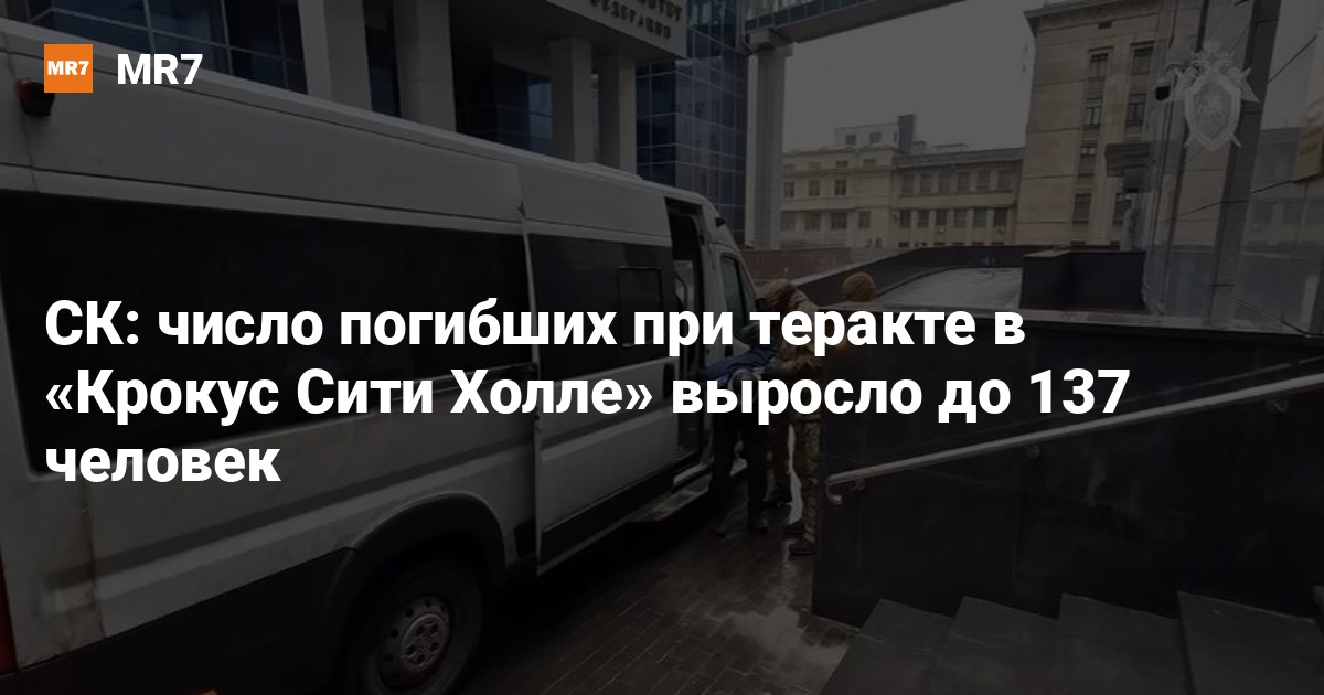 Число погибших в результата теракта в «Крокус Сити Холле» в Подмосковье выросло до 137 человек, трое из них — дети, сообщили в Следственном комитете РФ. К настоящему времени из общего числа погибших опознано 62 тела.