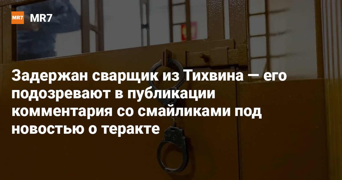 В Тихвинском районе Ленобласти задержали мужчину, которого подозревают в публикации комментария со смайликами в соцсети под новостью о теракте в подмосковном «Крокус Сити Холле», об этом стало известно «Фонтанке» 30 марта.